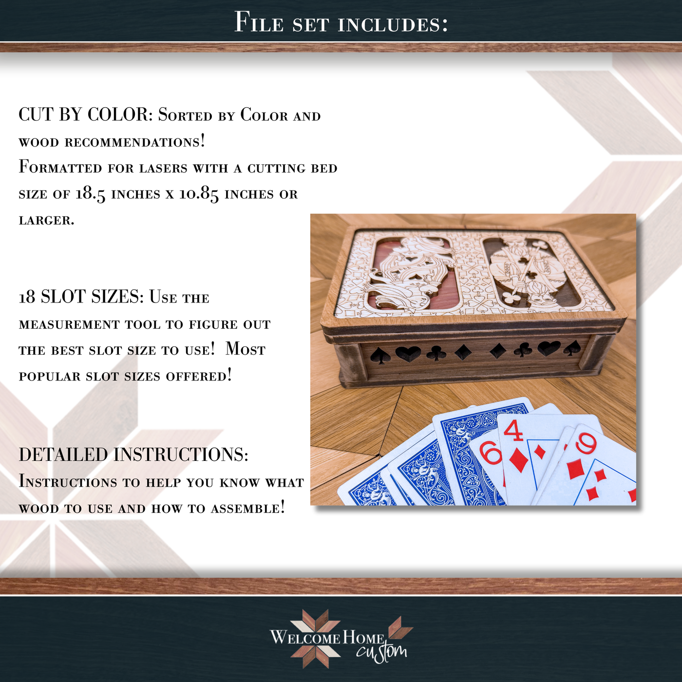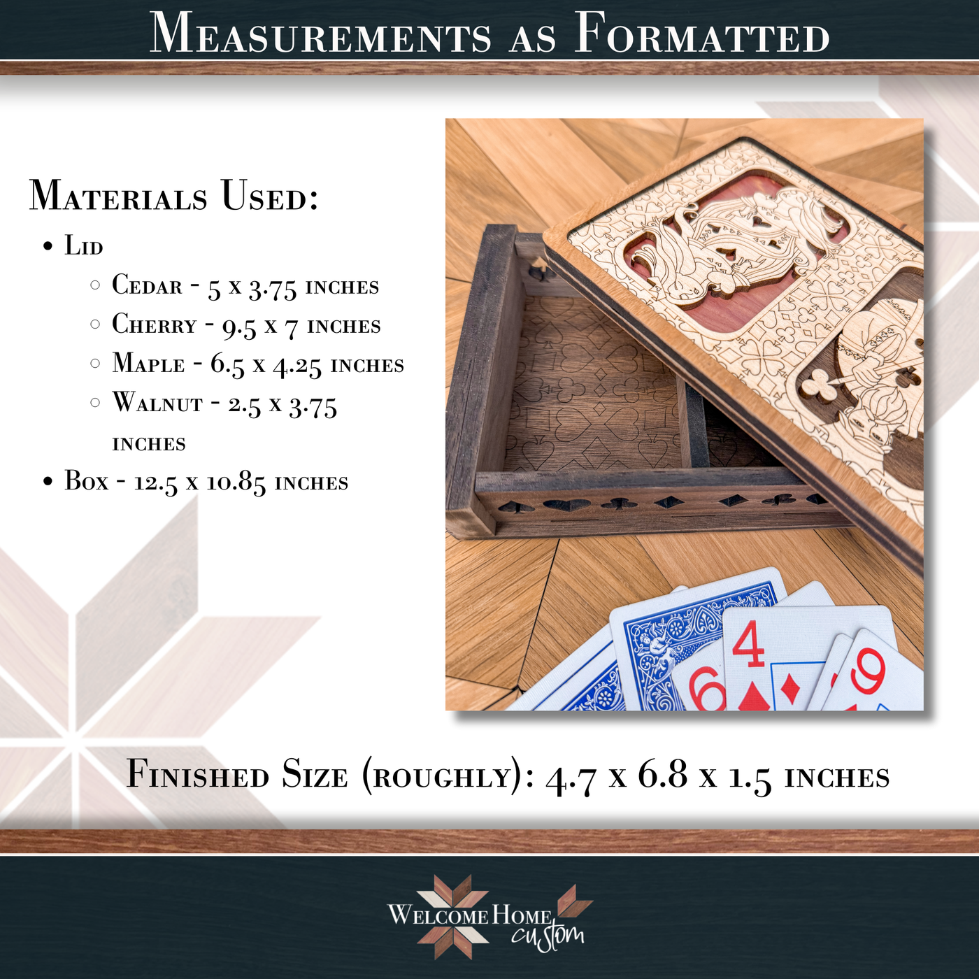 Want a stylish new spot for your card collection? Pop this box on your gaming table for everyone to admire. It fits 2 decks and comes with a guide on using multiple woods for a unique and stunning piece. Your game nights offerings are sure to impress!