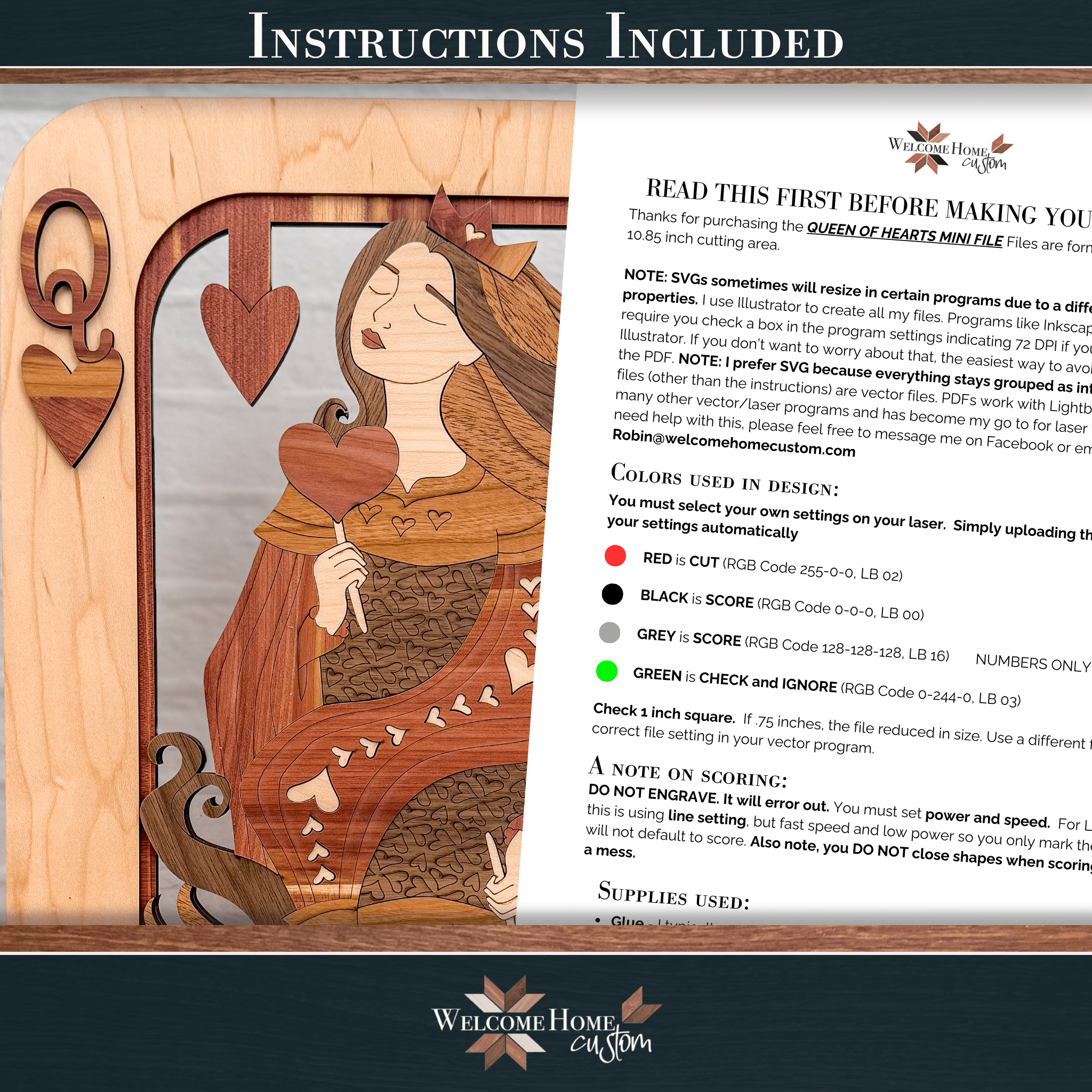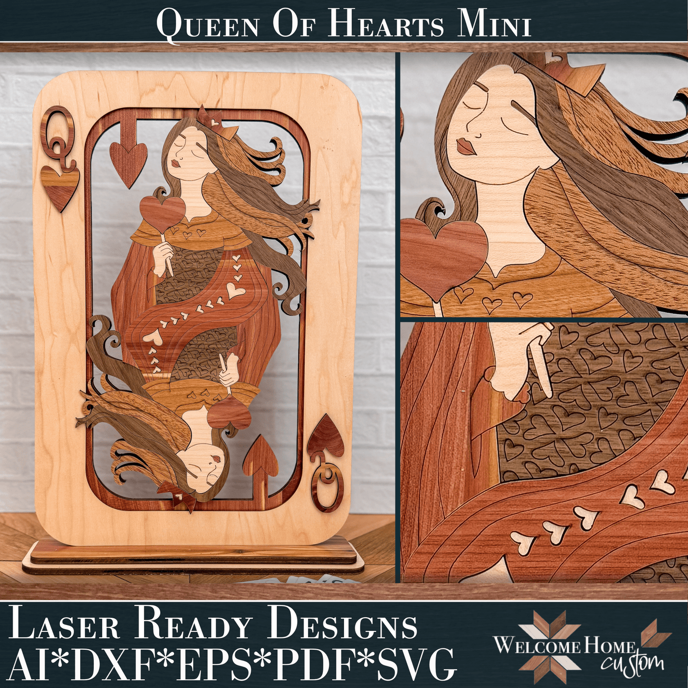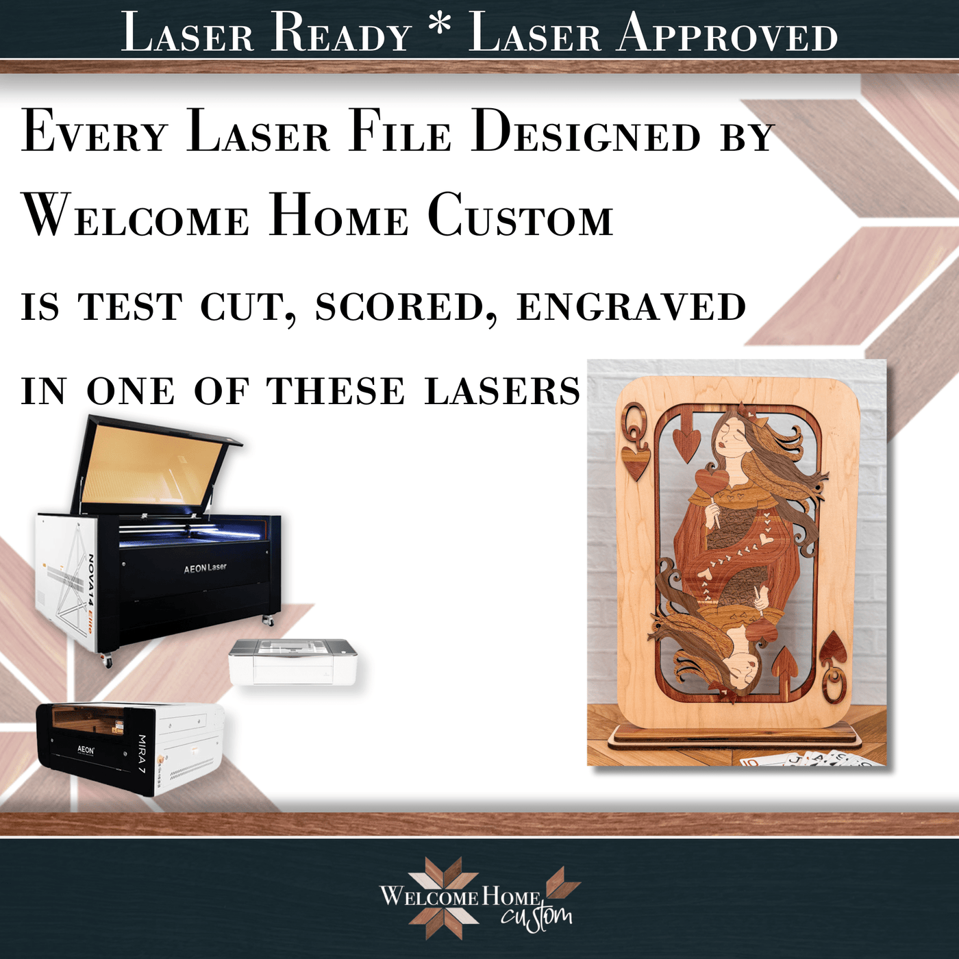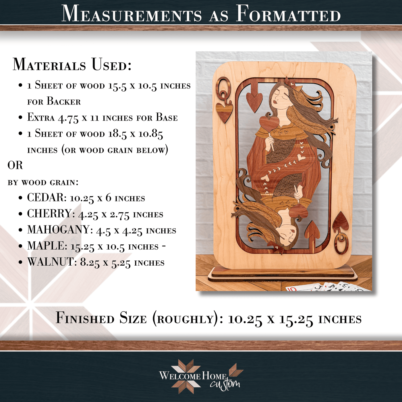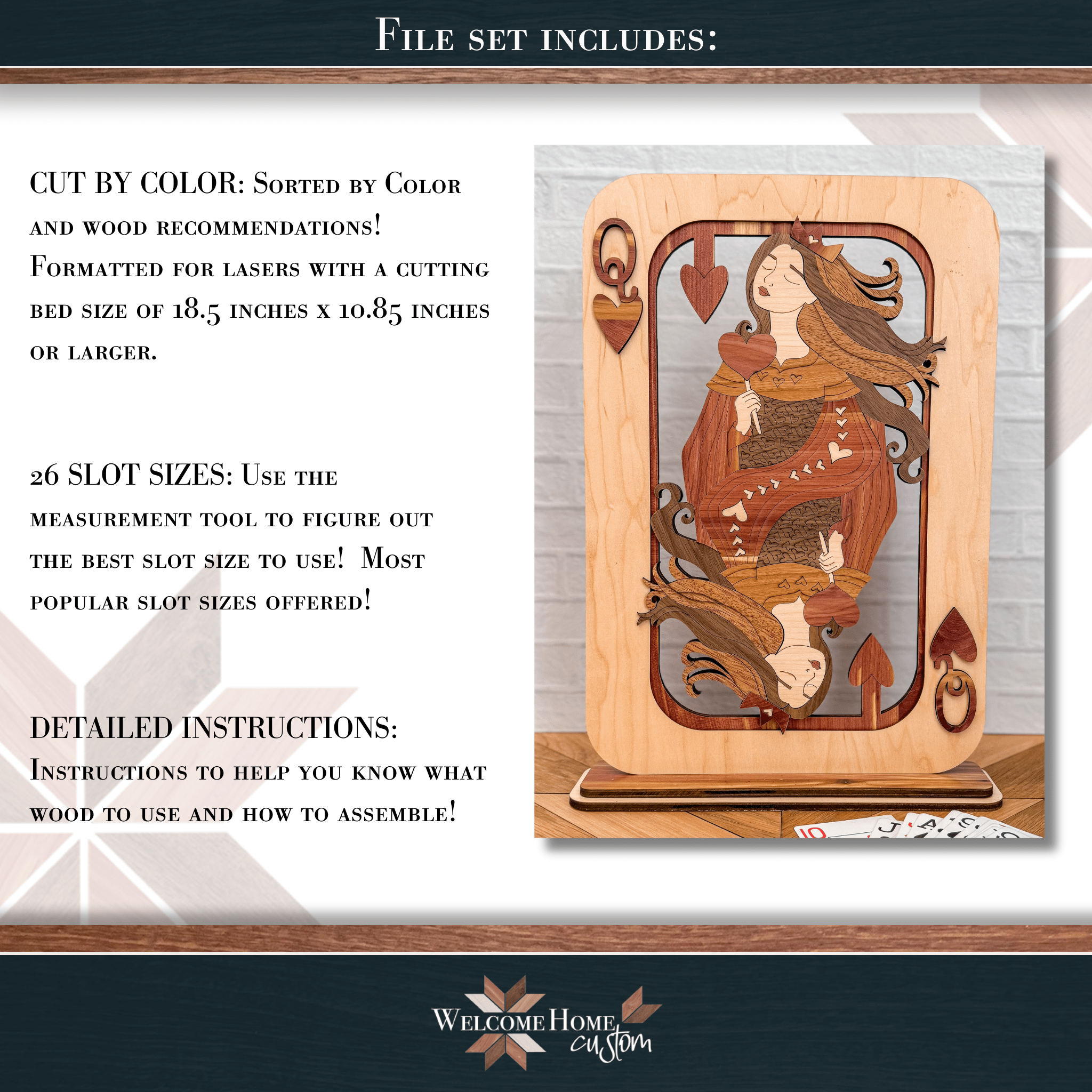 This queen of hearts is sure to capture your attention! Crafted with a variety of woods, she'll make a bold statement in any game room. Measuring 10.25 x 15.25 inches, she's the ideal size for elevating your gaming experience. This file set will quickly become one of your favorites!