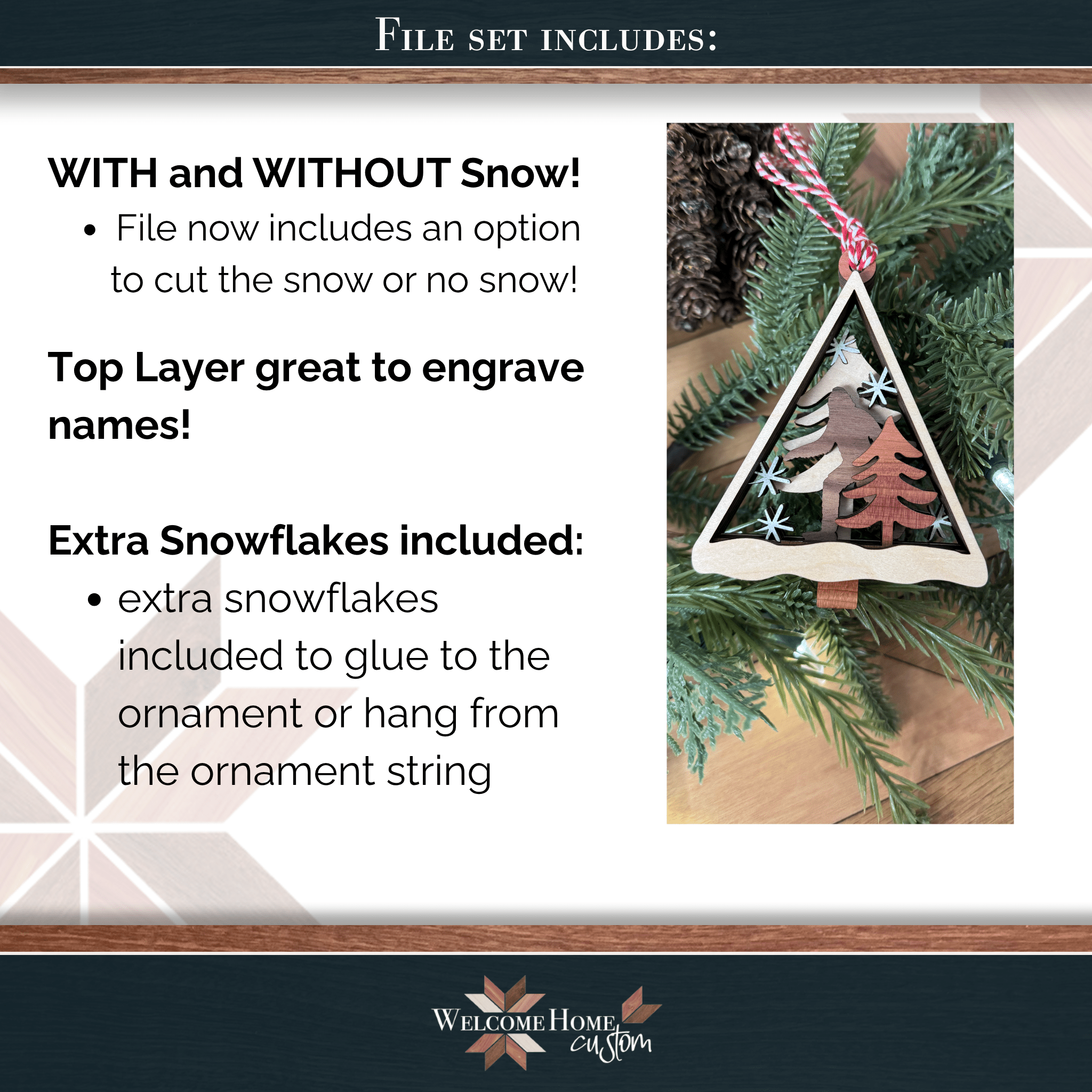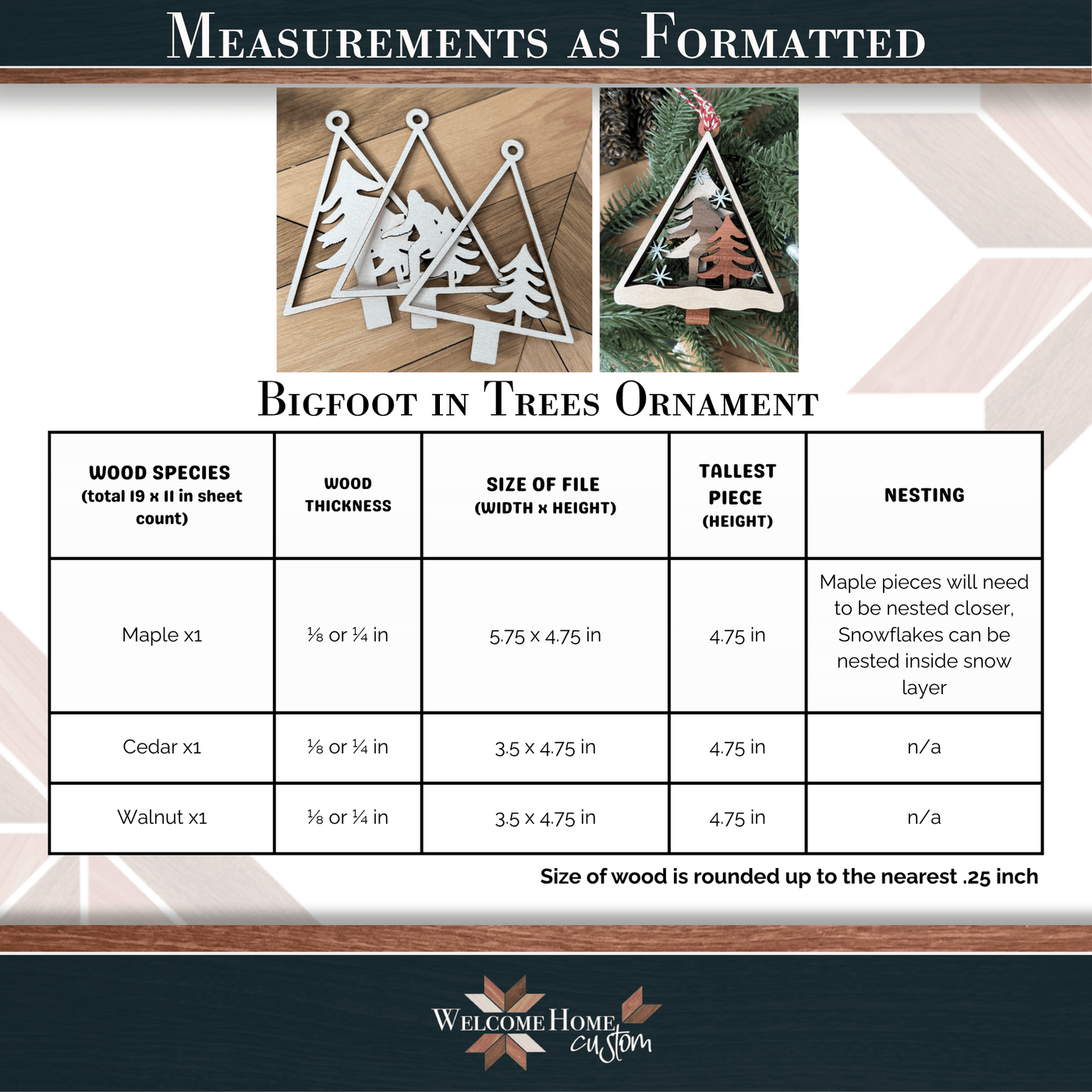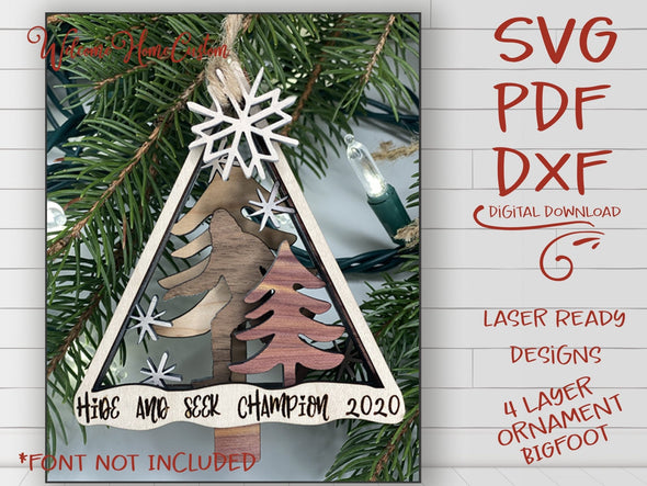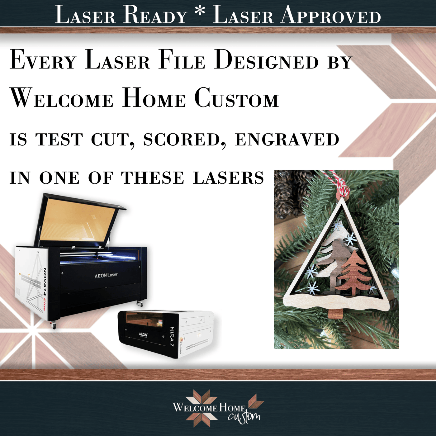 Elevate your holiday decor with our Bigfoot Ornament laser cut files. The intricate design features a Bigfoot walking through an enchanting trees, with the option for snow for a touch of winter magic or no snow if you prefer. Perfect for personalization at craft shows or in-store, this versatile ornament works with most lasers.